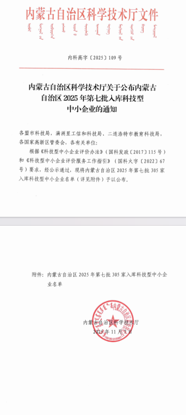 內(nèi)蒙古自治區(qū)2025年第7批入庫科技型中小企業(yè)名單公告