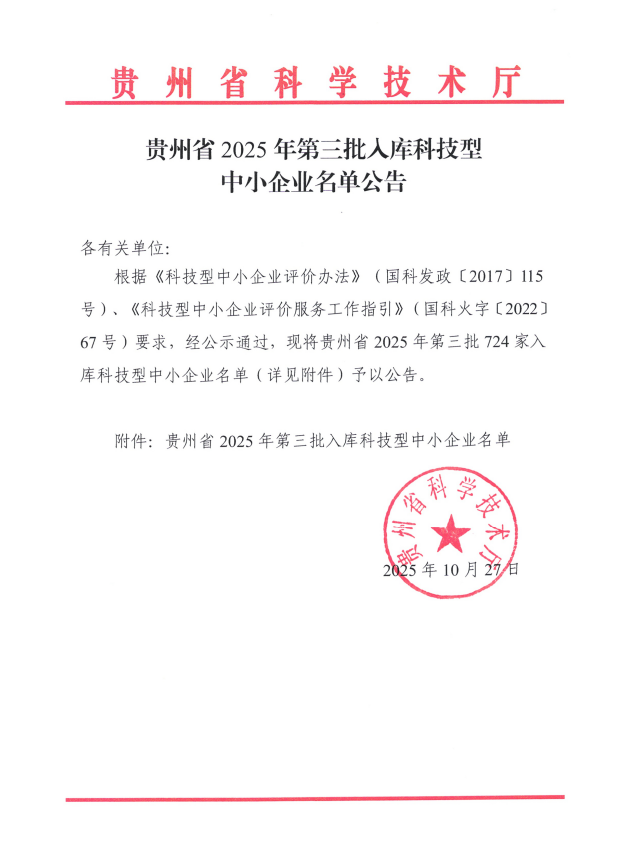 貴州省2025年第3批入庫科技型中小企業(yè)名單公告