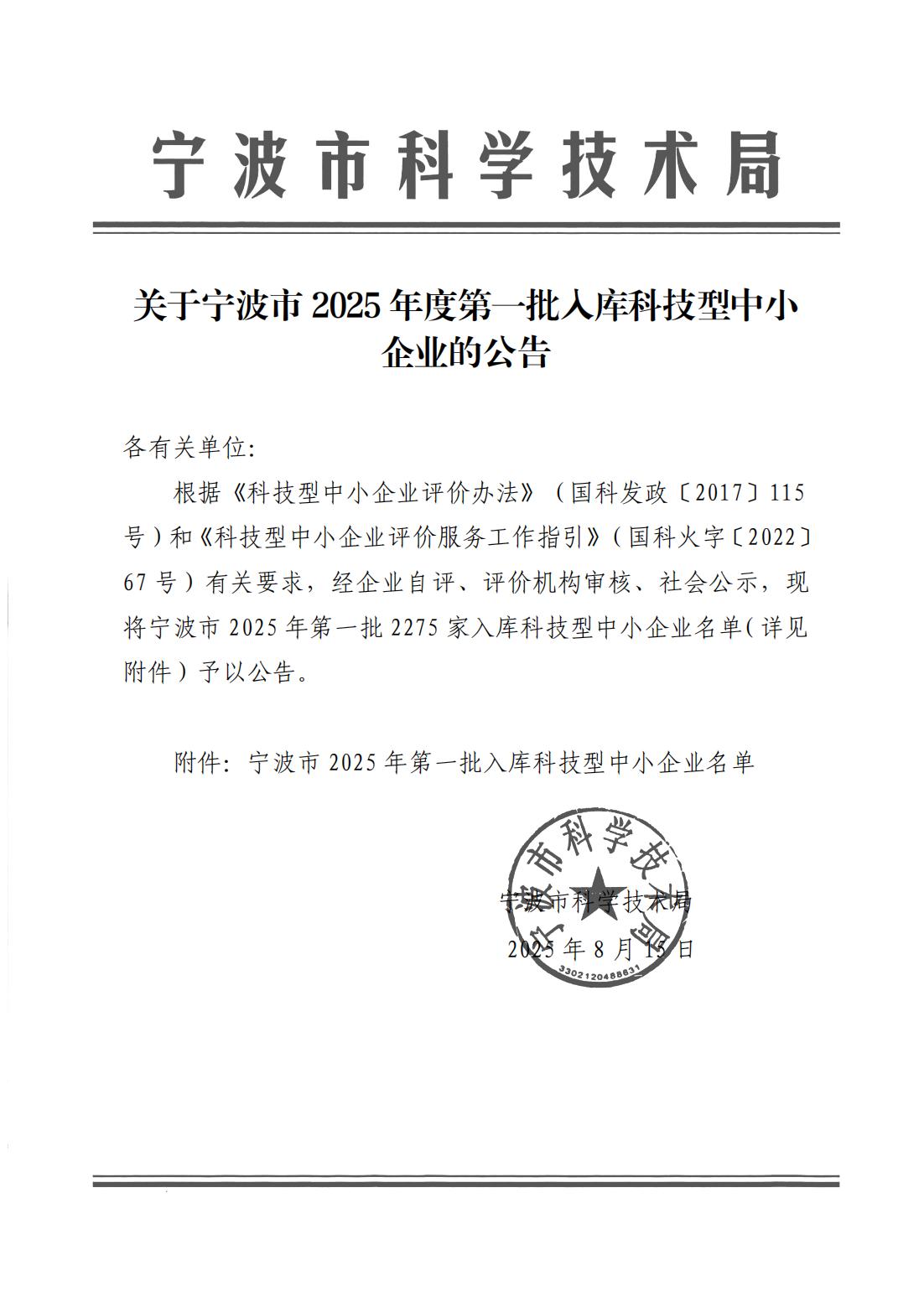 寧波市2025年第1批入庫(kù)科技型中小企業(yè)名單公告正文.jpg PICTURE
