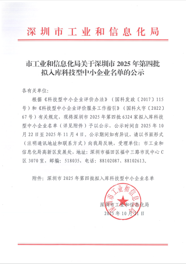深圳市2025年第4批擬入庫科技型中小企業(yè)名單公示